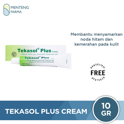Tekasol Plus Cream merupakan produk yang mengandung bahan aktif yang besinergi untuk membantu memudarkan noda hitam dan kemerahan pada kulit, melembapkan, meremajakan, menenangkan dan menghaluskan kulit