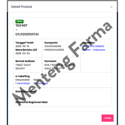 Telfast 60 Mg merupakan obat anti histamin (anti alergi) dengan kandungan Fexofenadine 60 mg yang efektif meringankan gejala rinitis alergi seperti bersin, pilek, gatal hidung/ langit-langit mulut/ tenggorokan, dan mata merah/ berair/ gatal.